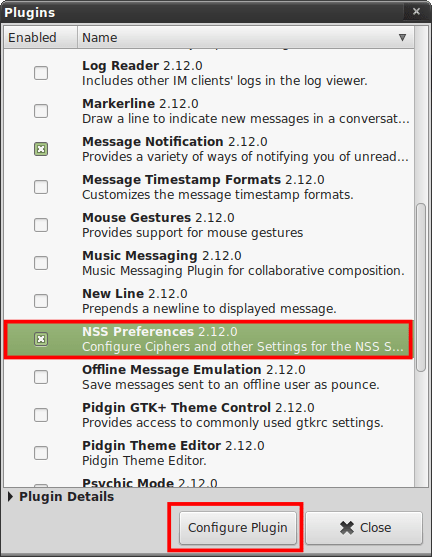 - V nabídce (menu) vyberte: Tools – Plugins – NSS Preferences (zaskrtnout)